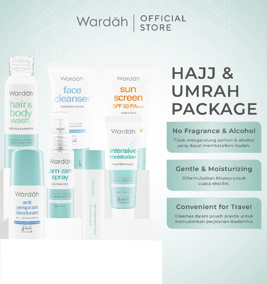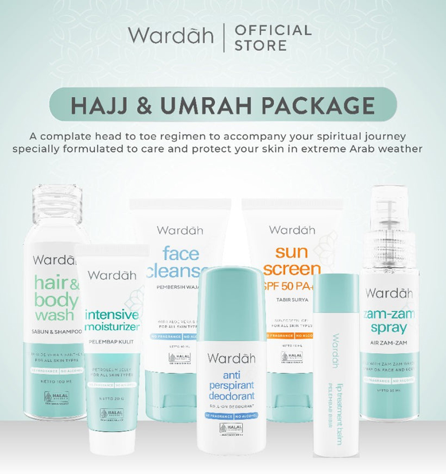 Wardah’s Umrah & Hajj Package is designed for comfort and practicality, allowing you to focus on worship while staying fresh and well-cared for. Let Wardah accompany you on this sacred journey, ensuring a smooth and fulfilling experience.