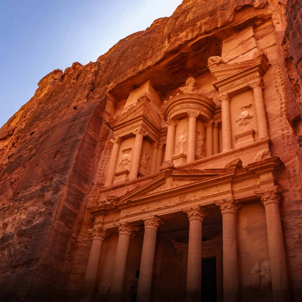 After breakfast, explore Petra, the Red Rose City, including its caves, tombs, canyon, and the iconic Treasury. Transfer to Mutah to visit the holy Maqams of Jaffar Bin Abi Talib, Bilal Bin Rabah, and Abdullah Bin Rawaha. Dinner and overnight in Amman.