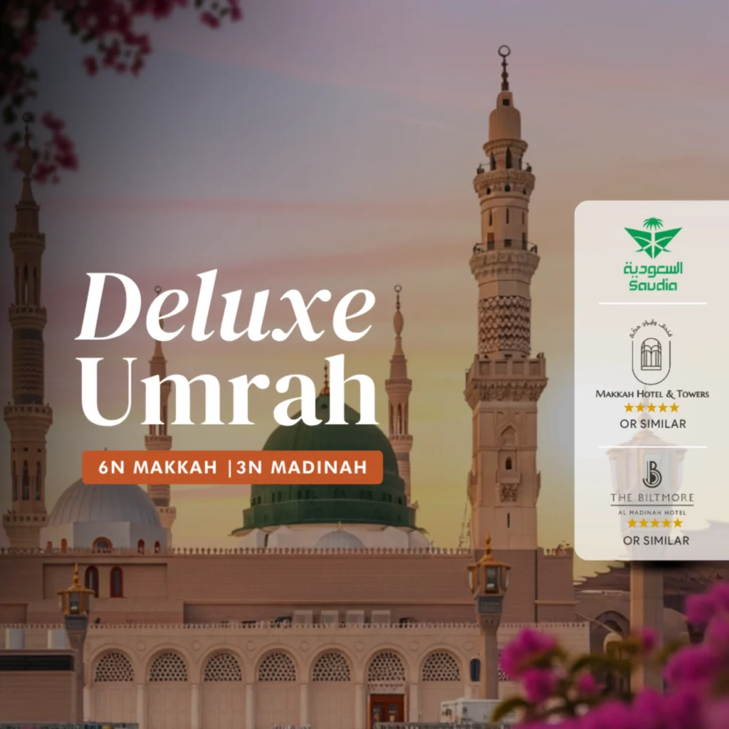 Embrace the blessings of Umrah with Karva Travel’s 11D Umrah Package — thoughtfully guided, refined in service, and designed for premium comfort.