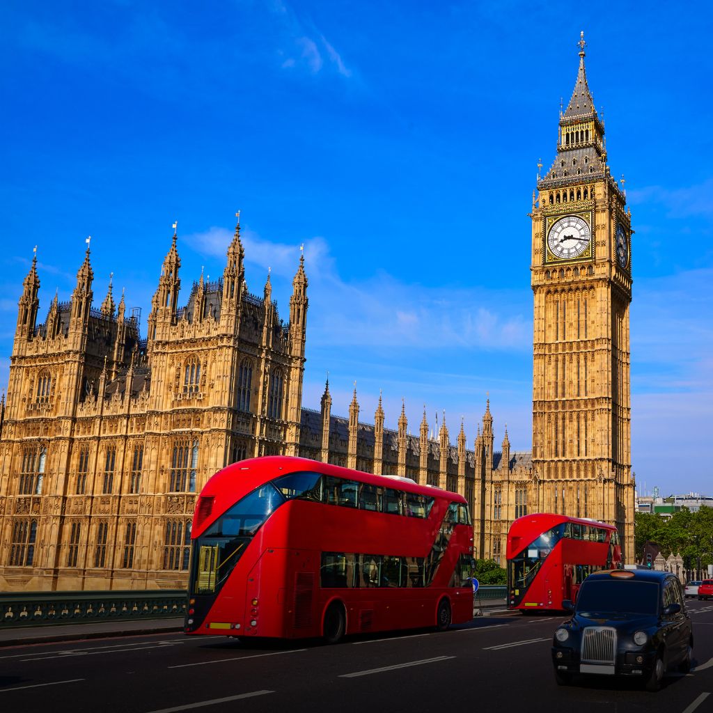 Tour iconic landmarks: Buckingham Palace, Westminster Abbey, Big Ben, Tower Bridge.